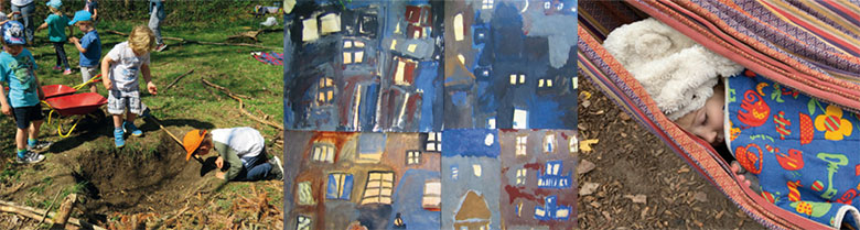 während der Frühling nach draußen lockt, wecken kürzer werdende Tage unseren Sinn fürs Gemütliche. Wir holen die Pflanzen von der Terrasse und richten uns auf das Leben in den vier Wänden ein. Eine stimmige Zeitqualität, so fanden wir, um zu erforschen, was es mit dem Drinnen und Draußen und dem Bedürfnis, Impulse von der einen in die andere Welt zu holen, auf sich hat und wie sich das in frühkindlichen Bildungsprozessen abbildet. Dabei geriet unsere anfängliche Vorstellung, dass es sich beim Drinnen und Draußen um eine Art Gegensatz handelt, rasch ins Wanken. An ihre Stelle trat die Idee, dass das Draußen zweifelsohne ein sehr besonderer Raum ist, letztlich aber einfach auch als einer von unendlich vielen facettenreichen Räumen bzw. Lernorten gedacht werden kann.