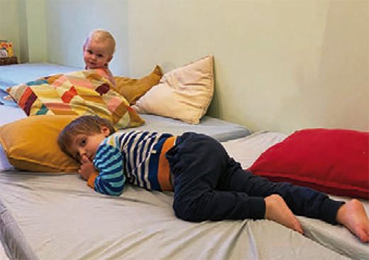 Anke Brüchner, Leitung: »Nach den Erfahrungen des Umbaus der Kita wusste ich, wie viel zusätzliche Büroarbeit damit einhergeht. Deshalb wollte ich das Projekt im ersten Moment auf gar keinen Fall angehen. Vom Pädagogischen her machte die Idee, die Kita um eine Krippe zu erweitern, jedoch viel Sinn. Und tatsächlich hatten auch schon einige Eltern immer mal wieder Bedarf an Krippenplätzen angemeldet. Mit der Entscheidung für den Bau sind wir vor allem den Familien entgegengekommen. Kleinere Kinder brauchen nun mal andere Materialien und einen kleineren Rahmen. Gerade vor dem 2. Lebensjahr ist Sicherheit und Kontinuität für Kinder besonders wichtig, und das ist für den Betrieb einer Krippe ein durchaus hoher Anspruch. Zum sicheren Rahmen gehören zunächst wir Begleiter:innen, aber eben auch der geschützte Raum. Ein Raum mit Regeln, an die sich alle – auch die Eltern – halten, und in dem viel Freiheit möglich ist. Viele Räume sind ja nicht für Kinder geeignet. Das ist bei uns anders. Wir bieten ihnen im Kinderhaus Räume, wo es an erster Stelle um die Kinder geht und wo sie sich ganz willkommen fühlen.«