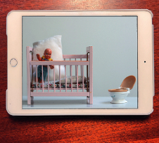 Die kleine Schwester Gretha ist noch zu klein, um wie Eva als Turnerin, Künstlerin und Regisseurin, aufzutreten. Aber sie genießt es, auf dem Schoß der Mutter zu sitzen und die Großeltern auf dem Bildschirm zu beobachten. Heute hat die Mutter den Computerbildschirm angeschlossen, sodass die Großeltern gut erkennbare Gesprächspartner:innen sind. Das macht die Familie häufig: Sie tauschen Neuigkeiten aus, sprechen darüber, wie es ihnen geht, und manchmal werden kleine Videos geteilt: z.B. von dem Tag, an dem sie zum See gegangen sind, um die Schwäne zu sehen. Oder von dem Sonntag, an dem sie auf dem Spielplatz im Park waren. In einer Ecke gab es ein Wasserloch, das so tief war, dass das Wasser in Grethas Gummistiefel gelaufen ist. Auch dieses Erlebnis wird vor den Augen der Großeltern neu abgespielt.